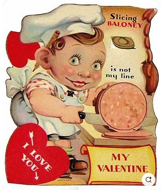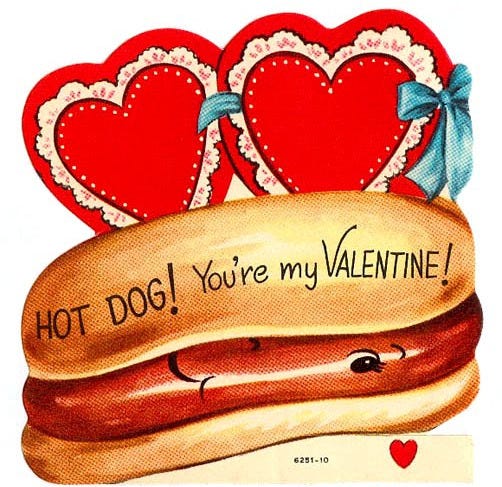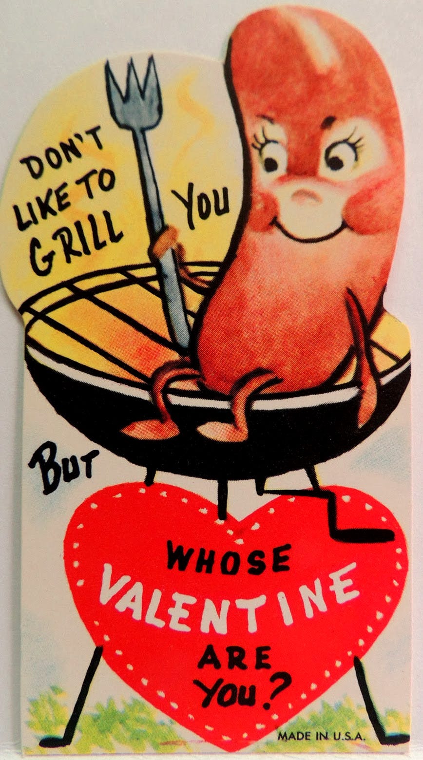 An’ by the way—this year’s Valentines’ CARD theme is purdy sweet cuz yer gettin’ served HEARTY WISHES good enuf ta EAT! (an’ funny too so 🌭 hot dawg! again)